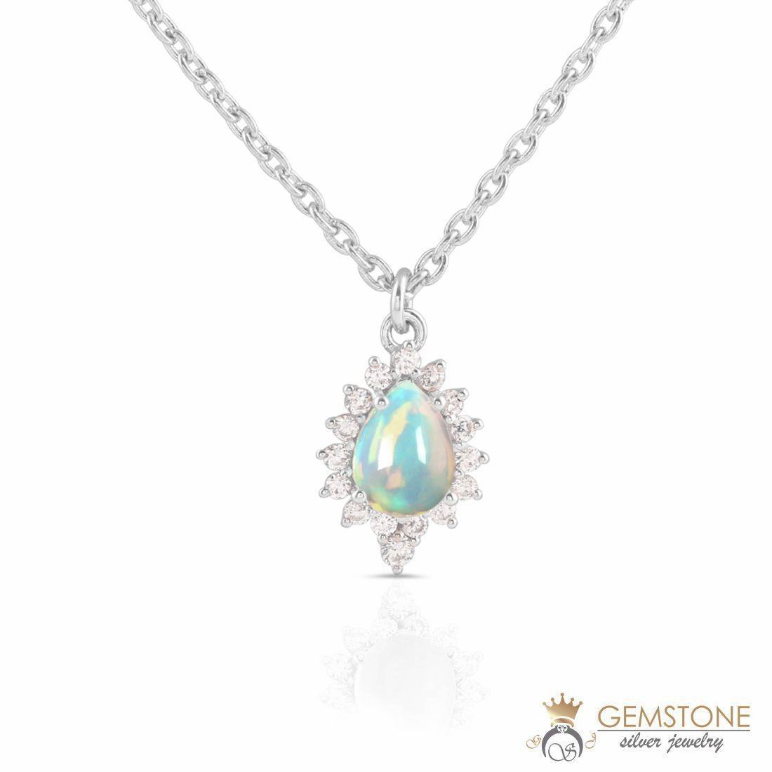 Opal stone is cut in the shape of a water drop to bring out all of its beautiful colors from each and every angle. This design is made in to give the feel of rains during spring. This stunning opal necklace for women is surrounded by the cubic zirconia gemstones to make it more sparkling and complement the colorful opal stone.