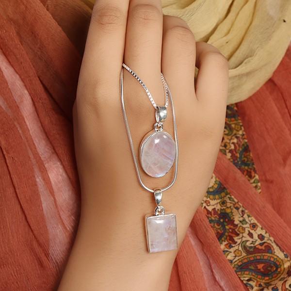 Pendants are made for those people who prefer simple and small jewelry rather than chunky necklaces. As far as spring trends go, a pendant is an elegant piece of jewelry that looks great on every woman on most outfits. In this moonstone pendant, you can see the blue shine moving under the surface just like rain droplets on flower petals.